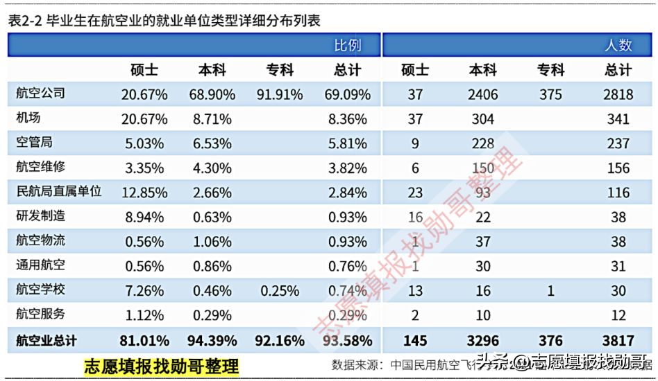 本科进入航空业占比94.39%,每个学院,每个专业都有详细的就业数据,更重要的是都有进入航空业的详细数据!