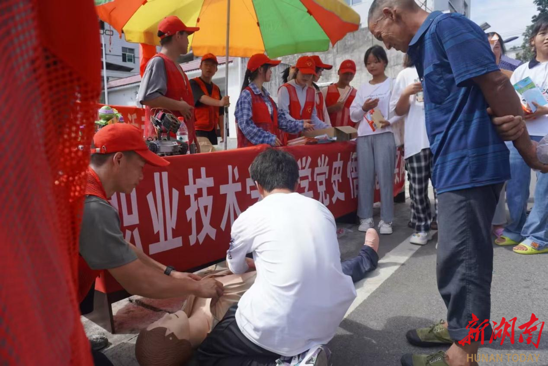 赶集当天,促进团成员们利用“学党史、悟思想”党史知识有奖问答这种群众喜闻乐见的方式,吸引了很多来赶集的村民主动参与。在党史知识的一问一答中,把党史学习教育带到村民身边,起到了寓教于乐的作用。促进团还为村民们发放预防溺水和安全用电的宣传手册,开展溺水时自救、急救溺水者现场教学,提高村民暑期安全防范意识,加强青少年儿童安全教育。