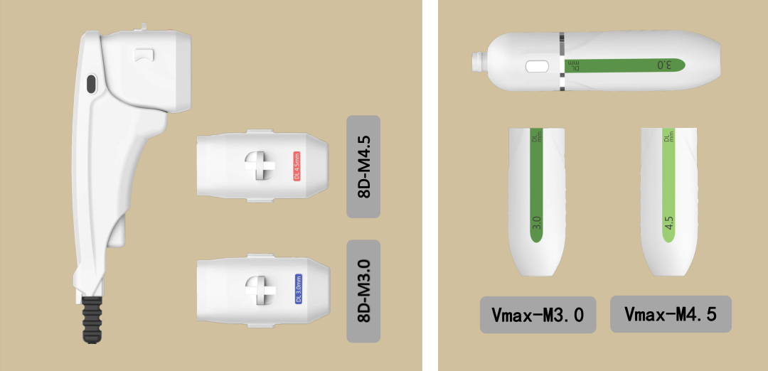 单点释能:超声王治疗仪将能量聚焦于单一个点,以发生高能量,经由换能器以热能的形式感化到皮下SMAS 筋膜层、深真皮层、浅脂肪层,形成热凝聚点;热效应促使筋膜、脂肪收缩,刺激胶原卵白增生,令老化微弱的胶原卵白因新生胶原进行重组分列,从而增加皮肤弹性,达到紧致概况、抚平皱纹、塑形三大功能。聚焦式超声波以非侵入形式,在聚焦区域发生热能,加热深部组织,进而激发身体天然的再生回响,从而达到所需疗效,非聚焦区域不发生热伤害。——深度。超声治疗仪针对面部抗衰的治疗层面要害是处在深部的SMAS层,而面部在分歧部位其SMAS层所处深度有所分歧,这就是为什么在把持过程中需要用到分歧型号治疗头(即对应分歧深度)结合治疗。——温度。超声治疗仪的每单一能量点(TCP)在皮下感化的温度可达到55-65° C,这个温度是今朝非侵入式紧肤仪器中最平安有效的温度,能的确有效的刺激皮肤组织,同时,超声波能量透过表皮在皮下单点聚焦,表皮不发生能量高点,所以不消担心会造成表皮的热伤害。独创“矩阵式”超声点阵手艺,多排多点、聚能成“点”、汇“点”成 “阵”,可按预先设置的能量间距与发射点数,依次感化于皮肤组织。一次把持=数次传统超声把持,效率大幅度提拔、缩短把持时间。凭据顾客对治疗的分歧体感接管度, 可自界说设置单点能量间距与发射点数, 从而实现对治疗面“定制化”网状提拉的目的。1、新一代超脉冲手艺( Ultra Pulse Technologv,简称PT手艺)采用脉冲掌握手艺,对组织进行持线地间歇性热感化,促使组织温度达到55-65°C。对比常规超声设备,超声王感化时间更短,最大脉冲宽度更小。可有效削减超声能量在组织内的热扩散,使聚核心四周组织热伤害更小。治疗更平安、舒适,术后恢复更快。8D治疗手具融“网状面”与“线性”治疗于一体,合营Vmax治疗手具的“单点”治疗,在高效治疗同时, 不放过精美部位,可实现“点-线-面”全笼盖。8D治疗手具成家2个治疗头:8D—3.0/8D—4.5,大面积治疗区域,高密度能量平均笼盖,多点多排聚焦间距可调,集成了“矩阵式”,最大值多达300个超声波能量聚核心(位),盖章式把持快速高效。