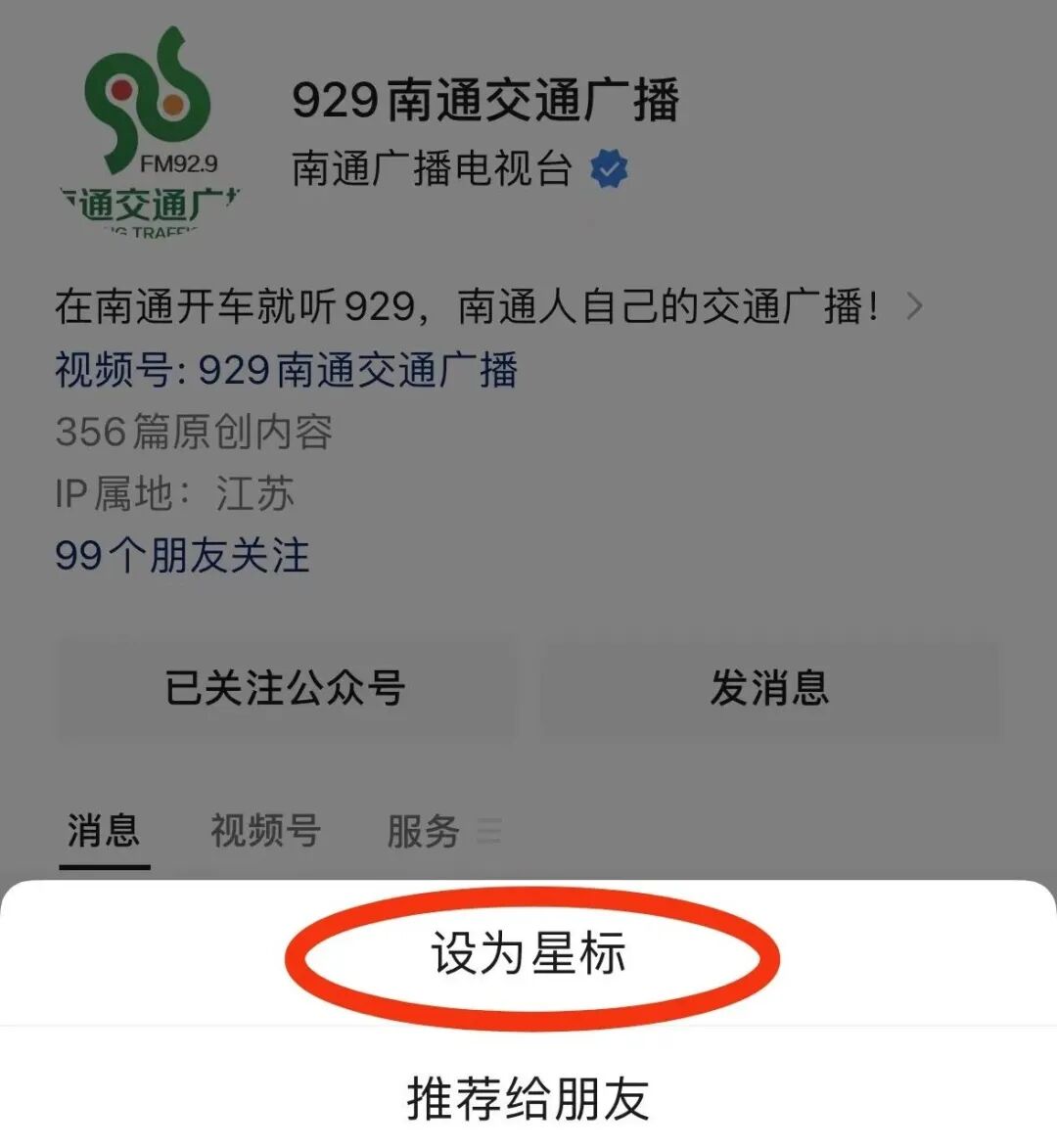 比来一些同伙说,收不到我们的推文很焦急。我们才发现,微信公家号又改版了,若是没“星标”我们“929南通交通广播”,就轻易错过我们的推文。为了不让我们走散,提醒人人尽快“星标”929南通交通广播。